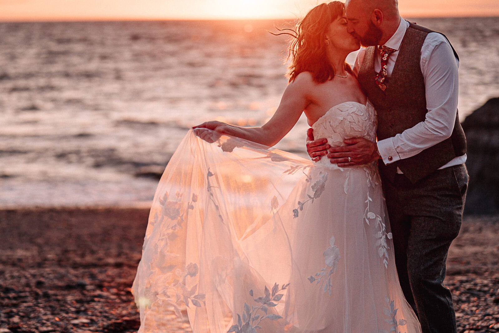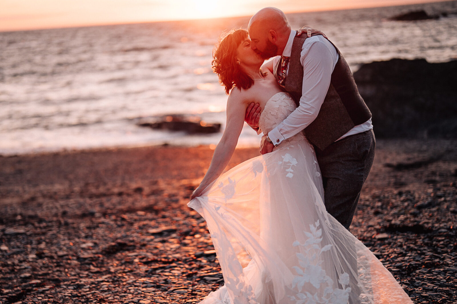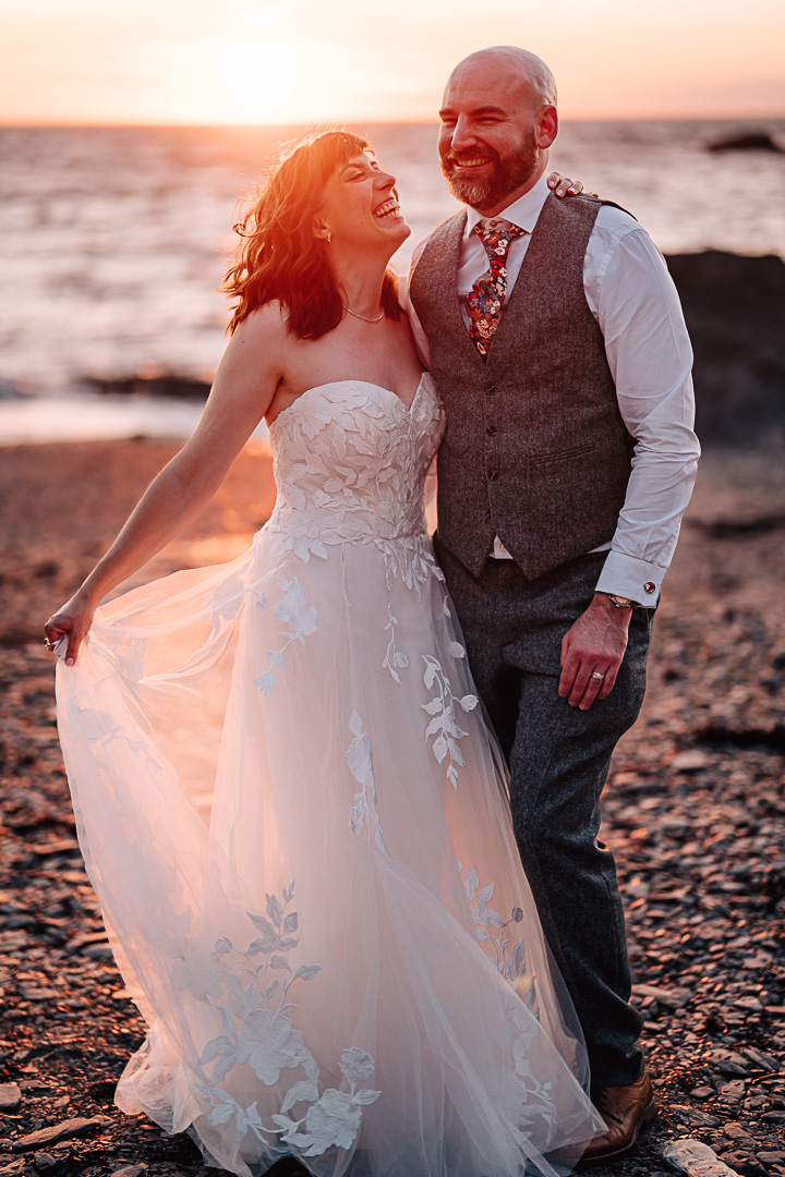 As the sun dipped down, we made the most of that golden Devon sunset. The beach session was pure magic and just shows again why Tunnels Beaches is one of the best wedding venues in Devon for sunsets – it allllllways delivers!!