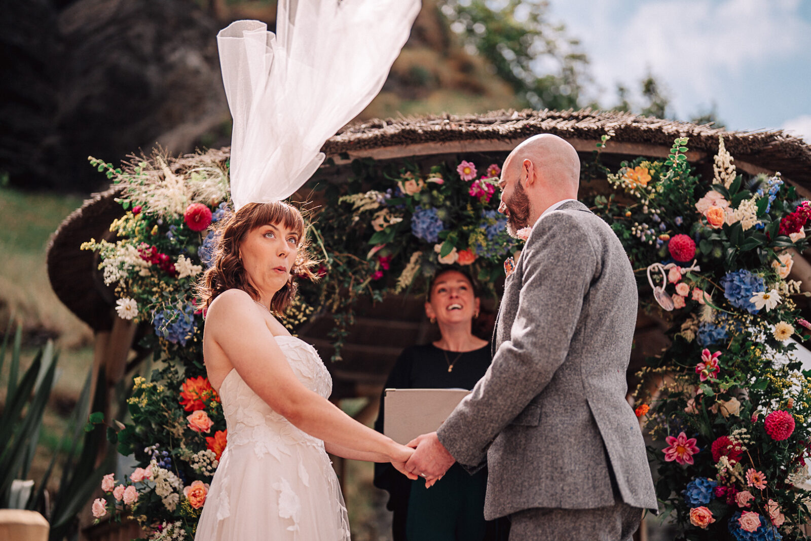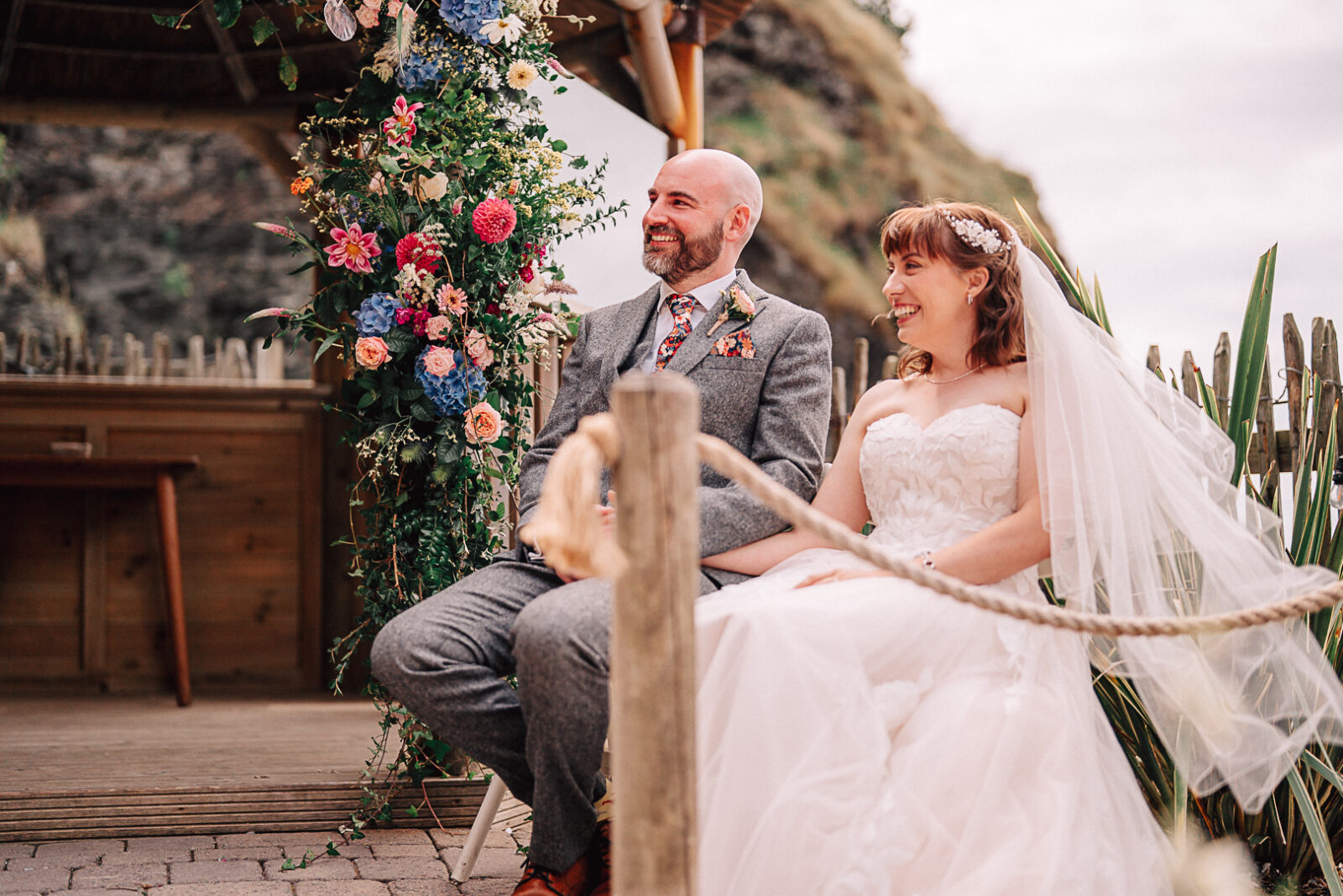 Theo and Nadia’s wedding at Tunnels Beaches in Devon was nothing short of magic, the perfect blend of laughter, emotion, and breathtaking scenery. From the very start of the day, there was such a buzz of excitement, with Nadia, Theo and all their guests getting ready on site, I could tell it was going to be a blinder!!
