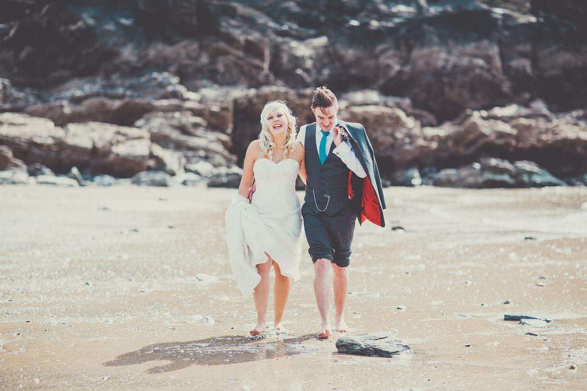 Laura and Matt got married at the absolutely stunning Lusty Glaze Beach Wedding Venue in Newquay Cornwall. This idyllic venue set on the beach is an absolutely gorgeous place to get married with the building opening up right onto the most stunning Cornish beach scenery. After the ceremony, we took the car and went and got some shots at some other local beaches namely Mawgan Porth which held special memories for them, before returning to Lusty Glaze. I documented the day from here out in hysterics at what transpired was one of the most funny wedding days, including some amazing speeches from all, a mini cake fight between the bride and groom after the cutting and the bride and groom walking down to the sea to take a sunset dip!